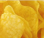 The potato is the main ingredient in potato chips and manufacturers will tell you a potato needs to have both a low moisture and low sugar content in order to produce a crisp chip. The most flavorful chip is made using olive oil and the oil has to be hot: 320-365 degrees depending on who you ask. When the potato slice is placed into the hot oil, the natural sugars caramelize and the proteins break down into a thin shell which protects the potato from soaking up the oil, thus creating a crisp chip.