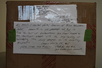 I was gathering my mail when a local woman walked in and handed Liz a package with a laugh, a big laugh. Of course, I and everyone else in the post office wanted to see what was so funny so Liz showed us the box from the local gunsmith, who couldn’t make it to the post office that day. Instead, he wrote a note of instructions and taped the note to the front of the box.