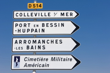 Travel Note: The Normandy American Cemetery and Memorial is known locally as the “Cimetiere Militaire American” (on road signs, as illustrated below) or “Cemeterie USA Saint Laurent” (on Michelin road instructions). Excellent directions can be obtained by going to www.viamichelin.co.uk and plugging in your origin and “Cemeterie USA Saint Laurent” address and “14710 Colleville-Sur Mer” as the destination city.