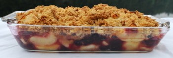 Place the glass pan on the table and serve with vanilla ice cream, frozen vanilla yogurt, or just plain (my favorite way).
