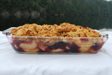 Summertime and fruity desserts go together and one of my family’s favorite is a Peach Blueberry Crumble. Sweet, juicy fruit is very important – large white or yellow peaches and plump blueberries – but for me it’s all about the crumble – the more the better. A few years ago I started making a peach crumble from a recipe in Cooks Illustrated but adapted it to my tastes: