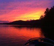 Sitting around a big table on an old Adirondack porch, we just finished having dinner – sliced ham with peach sauce, corn and bean salad, sautéed mushrooms, and salad when the sun started to set. Between conversations about Pan Am Airlines in its heyday, Boeing, South Carolina and the unions, and the upcoming hurricane “Irene,” my friend Bill pointed to the sky. We looked in amazement and simultaneously got up from the table and ran down to the dock and this is what we saw: