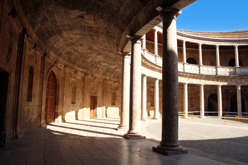 Palacio Carlos V is a square-shaped building with a circular center (as pictured below) that was built within the walls of the Alhambra after the Spanish conquered Granada to ensure proper housing for the new ruling class. Within the palace are two museums:
