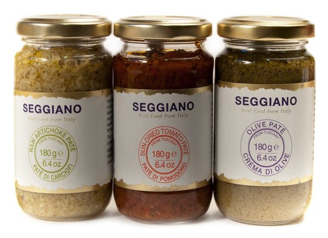 Seggiano patés are prepared for the company by the Angeli family on Monte Amiato in Tuscany and distributed through a British company, Peregrine Trading Company. There are three types of patés: