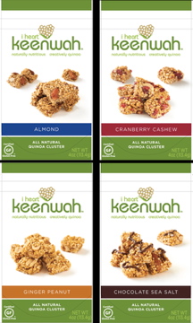 Last summer, the Chicago-based “I Heart Keenwah” rolled out four new snack foods made with quinoa. Recognizing the snack food market is heavily wheat-based and in need of a nutritious gluten-free snack food alternative, the company used whole grain quinoa, flakes, and puffs blended with nuts, and various sweeteners including tapioca syrup and honey, to come up with four all natural quinoa clusters: