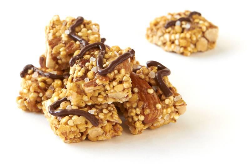 Almond: The almond clusters contain quinoa, almonds, tapioca syrup, dried cane syrup, honey, almond oil, baking soda and salt.