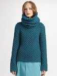 Several years ago, Nora Ephron authored a book called “I Feel Bad About My Neck” which is a humorous account of growing old and what happens to our necks as we age – they crease and sag and cause us to go out and buy turtlenecks. A crochet sweater can be a lovely addition to a wardrobe and for a woman of a certain age, a crochet knit turtleneck is even better (lets cool air in to alleviate hot flashes) but whoever designed this sweater got a bit carried away because there is enough turtleneck on this sweater to cover the whole head and tie a knot on the top.