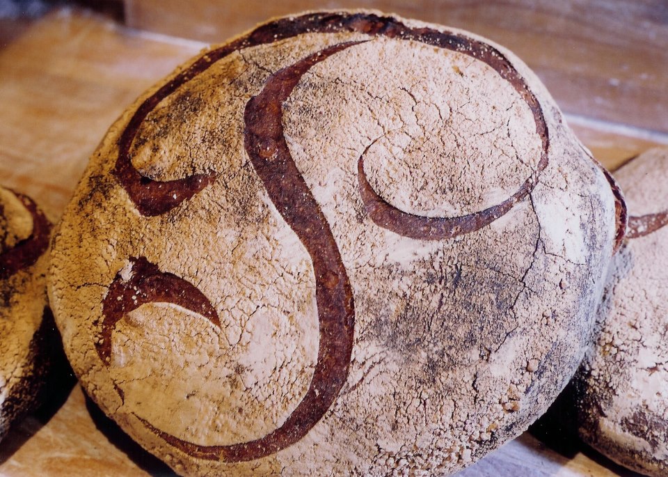 Rye Flour Loaf: A round 2-pound loaf made from stone ground wheat and rye flours, the Rye Flour Loaf has a dark outer crust and a rich heavy taste.