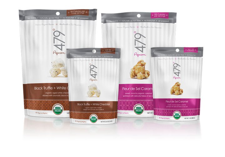 479 Popcorn is a premium artisan popcorn hand-made and air-popped in San Francisco, California. The company was founded by Jean Arnold whose love of popcorn began in her childhood when her mother used to make fresh popcorn in a hand-cranked stove-top popper. Jean grew up and attended Le Cordon Bleu in London before venturing out on her own in the organic popcorn business. Prior to starting her company, Jean discovered that 479 degrees is the optimal temperature for popping corn which is how she came to name her company.