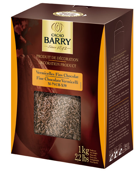 The only manufacturer of chocolate sprinkles that falls into the third category (that I know of) is a Belgian company – Callebaut who has a French division called Cacao Barry. Cacao Barry has been making chocolate products in France since 1842 and joined Callebaut 16 years ago in 1996. The company makes scrumptious chocolate sprinkles called “vermicelles” with six ingredients: sugar, unsweetened chocolate (41%), cocoa powder, butterfat, whole milk powder, and natural vanilla.