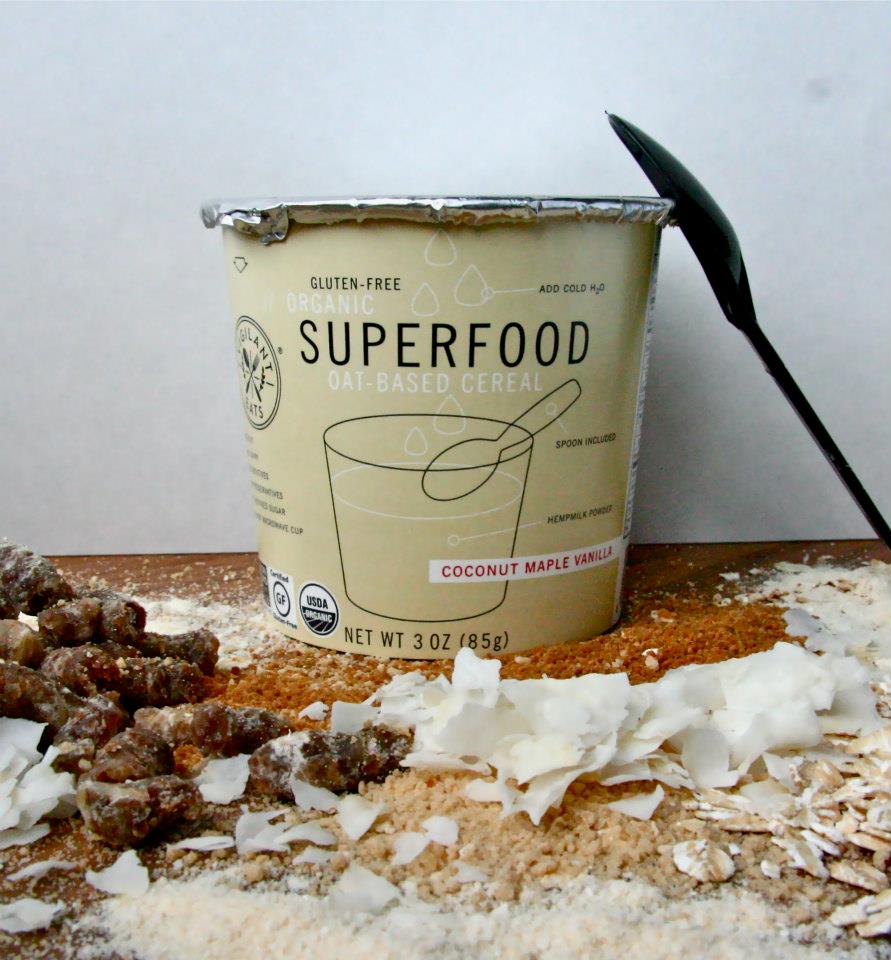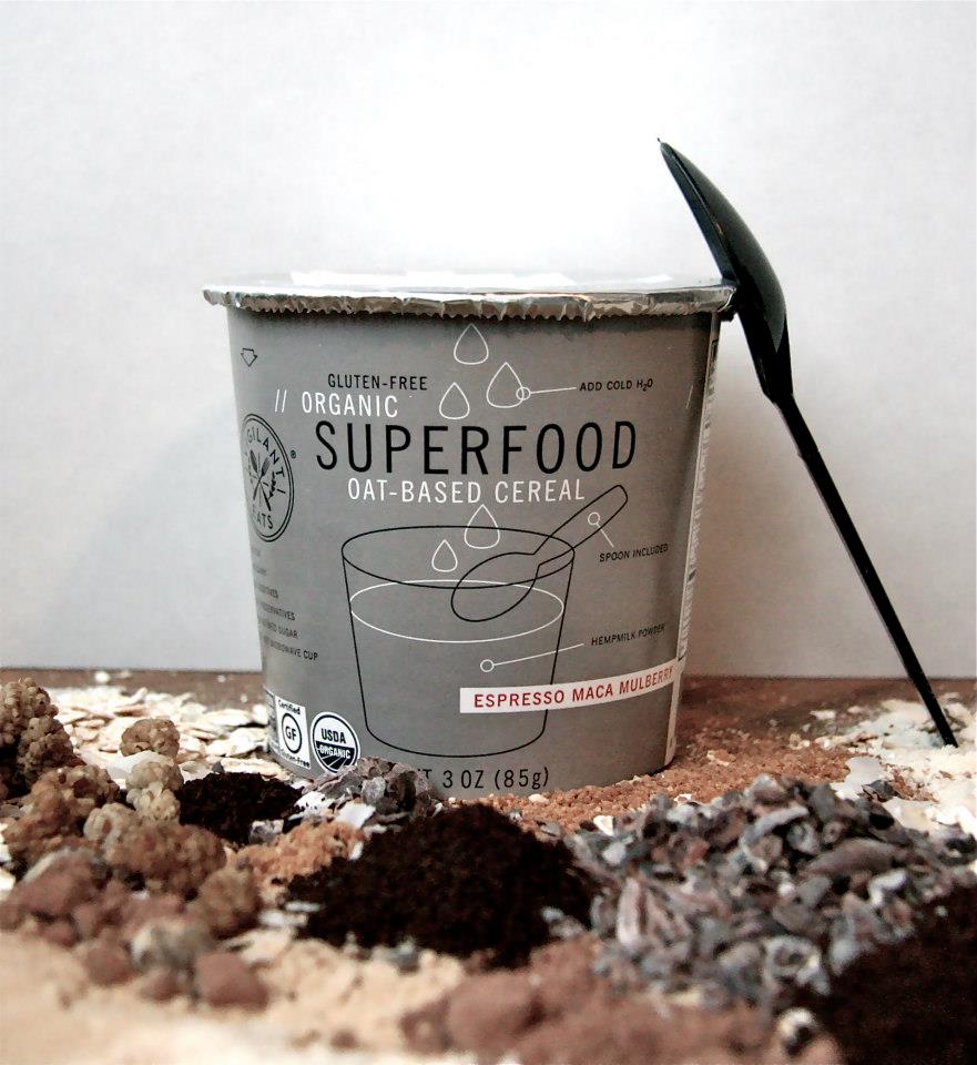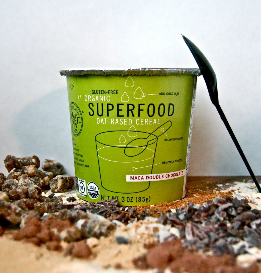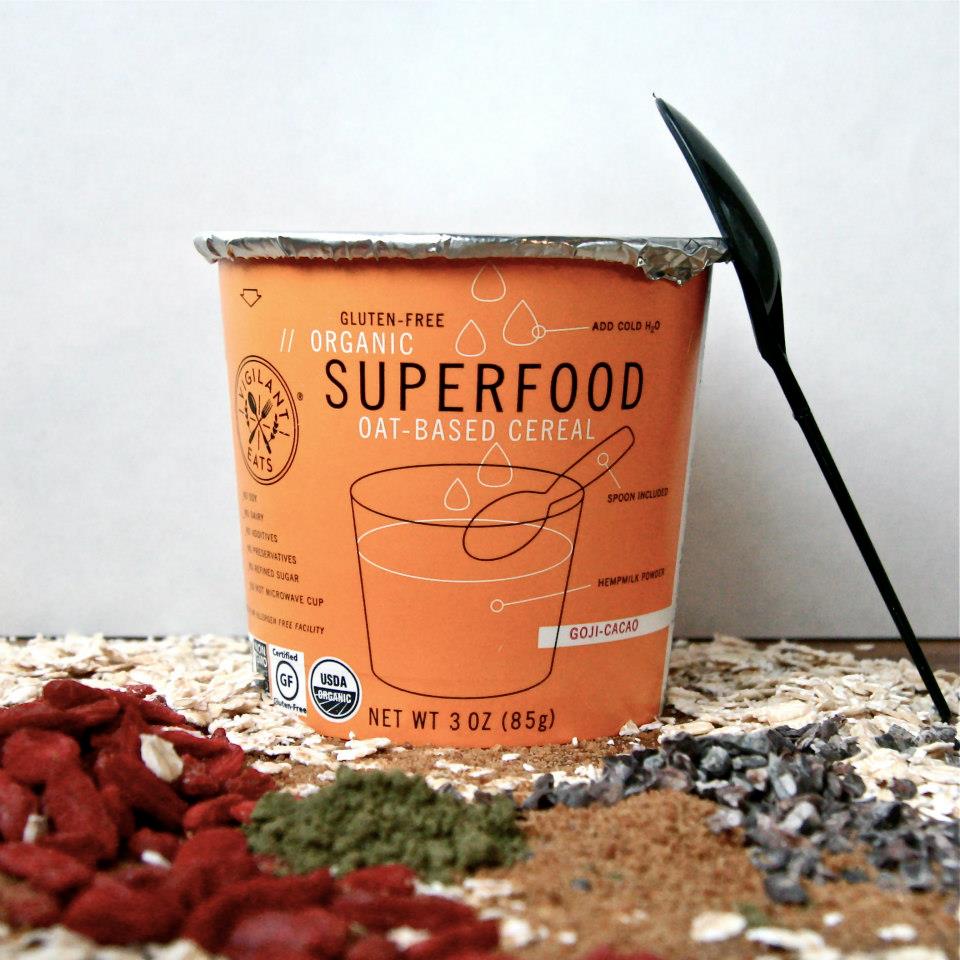 Vigilant Eats makes a unique product: Organic Superfood Cereal – a gluten-free dry cereal that contains no dairy, soy, refined sugar, additives or preservatives. Organic Superfood Cereal does contain oats, oat flour, goji berries, cacao nibs, hemp flour, coconut palm sugar, yacon (a sweet tasting root plant) powder, maple powder, and cinnamon. Sold in 3 ounce cups (with a small foldable spoon on the inside), Superfood is, for lack of a better word super convenient. Just add cold water or milk and stir and you have a high-protein, low-glycemic, nutrient dense cereal that tastes terrific. Actually, it tastes better than terrific…it’s totally delicious.