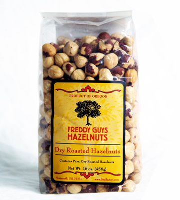 The hazelnuts are roasted twice a week which means the nuts are fresh when ordered and shipped. The hazelnuts come in various sized bags from 8 ounces to 1, 2, 4 and even 10-pound bags. Each 8-ounce bag of dry roasted hazelnut kernels is $6 and the 1-pound bag is $10 and can be ordered at the company website listed below. The company also sells raw natural hazelnut kernels, roasted dice hazelnuts (great for putting on the sides of a cake or to add to sautéed green beans), roasted hazelnut meal (for baking), and a wide selection of other hazelnut products including oils, seasoned nuts, dipped nuts, granola, and spreads.