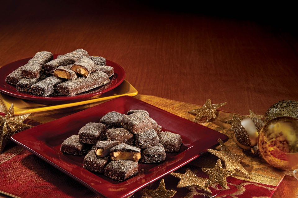 Enstrom’s Almond Toffee comes in milk or dark chocolate in a 1-pound box for $19.95. There is also 2-pound box for $37.95, a 3-pound box for $53.95 and a 5-pound box for $79.95. The company makes Almond Toffee Petites which are one inch squares of almond toffee enrobed in milk or dark chocolate and sprinkled with crushed almonds. A 1-pound box is $19.95 and larger boxes (2 pounds for $37.95 and 4 pounds for $66.95) are also available.