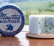 When most people think of blue cheese, they think of a strong pungent cheese such as Roquefort Cheese – a blue cheese made from sheep’s milk that hails from the south of France. Maytag Blue Cheese of Newton, Iowa is a blue cheese made from cow’s milk that is tangy – almost lemony – with a moist and crumbly texture; a semi-soft cheese loved by many who give it a chance.