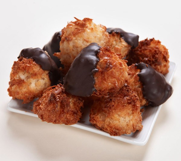 A dozen plain macaroons sell for $32 (wrapping included). Eight chocolate dipped coconut macaroons sell for $32 or ten cookies (6 plain and 4 chocolate dipped) sell for $32 plus shipping. Order on-line from the company website (listed below) or place an order by phone: