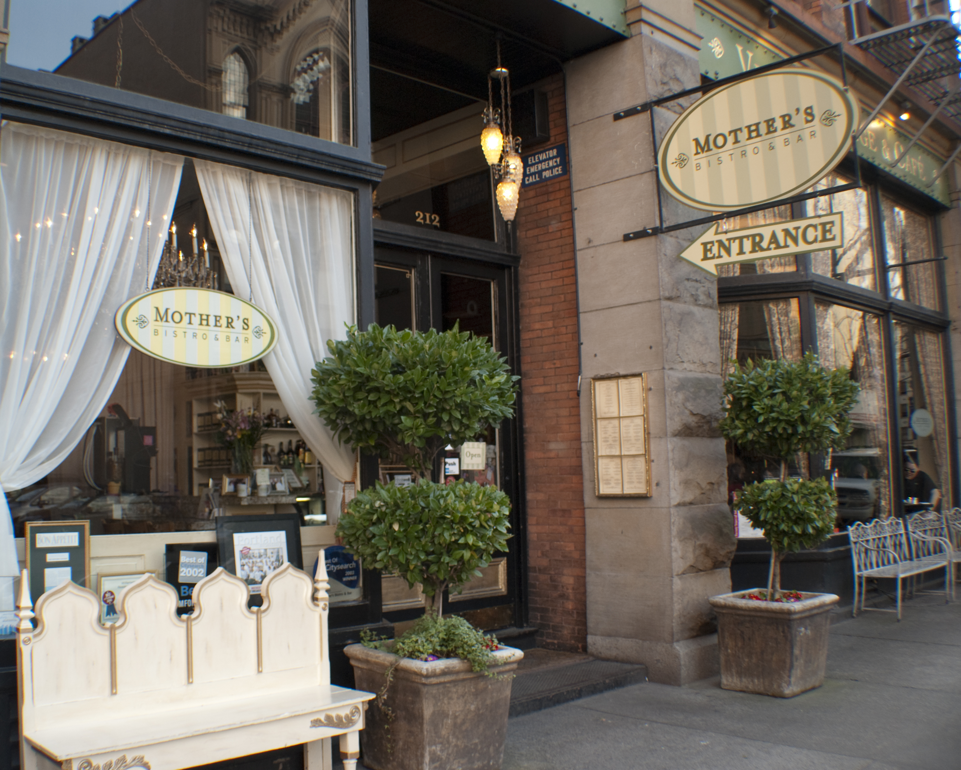 Consider having lunch at Mother’s Bistro at 212 SW Stark Street (about 12 blocks north of the PSU Farmer’s Market) – a local institution of sorts in an old building with heavy doors, brick walls, gilded mirrors, chandeliers, and velvet draperies reminiscent of someone’s grandparents home. There’s even a small cubby hole of a room designated for little diners that want to draw instead of eat. A bustling breakfast, brunch, and lunch spot, be sure to make reservations or be prepared to wait for a table in order to enjoy comfort food made from scratch including biscuits, french toast, crab cakes, cantaloupe sized cookies, apple crisp, and more.