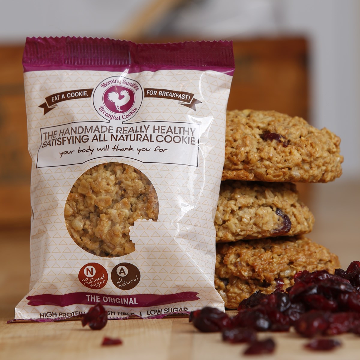 The Morning Sunshine Breakfast Cookie is a nutritionally impressive yet delicious “cookie” that can be eaten for breakfast or for a quick snack on the go.With three varieties to choose from – Original, Gluten-free, or Dark Chocolate Flax – the Morning Sunshine Cookie is not too sweet with only 4-6 grams of sugar per cookie. With a whopping 12-16 grams of protein and 9 grams of fiber per cookie and fats derived from healthy sources including almonds and sunflower seeds, the breakfast cookie will fill you up but not weigh you down.