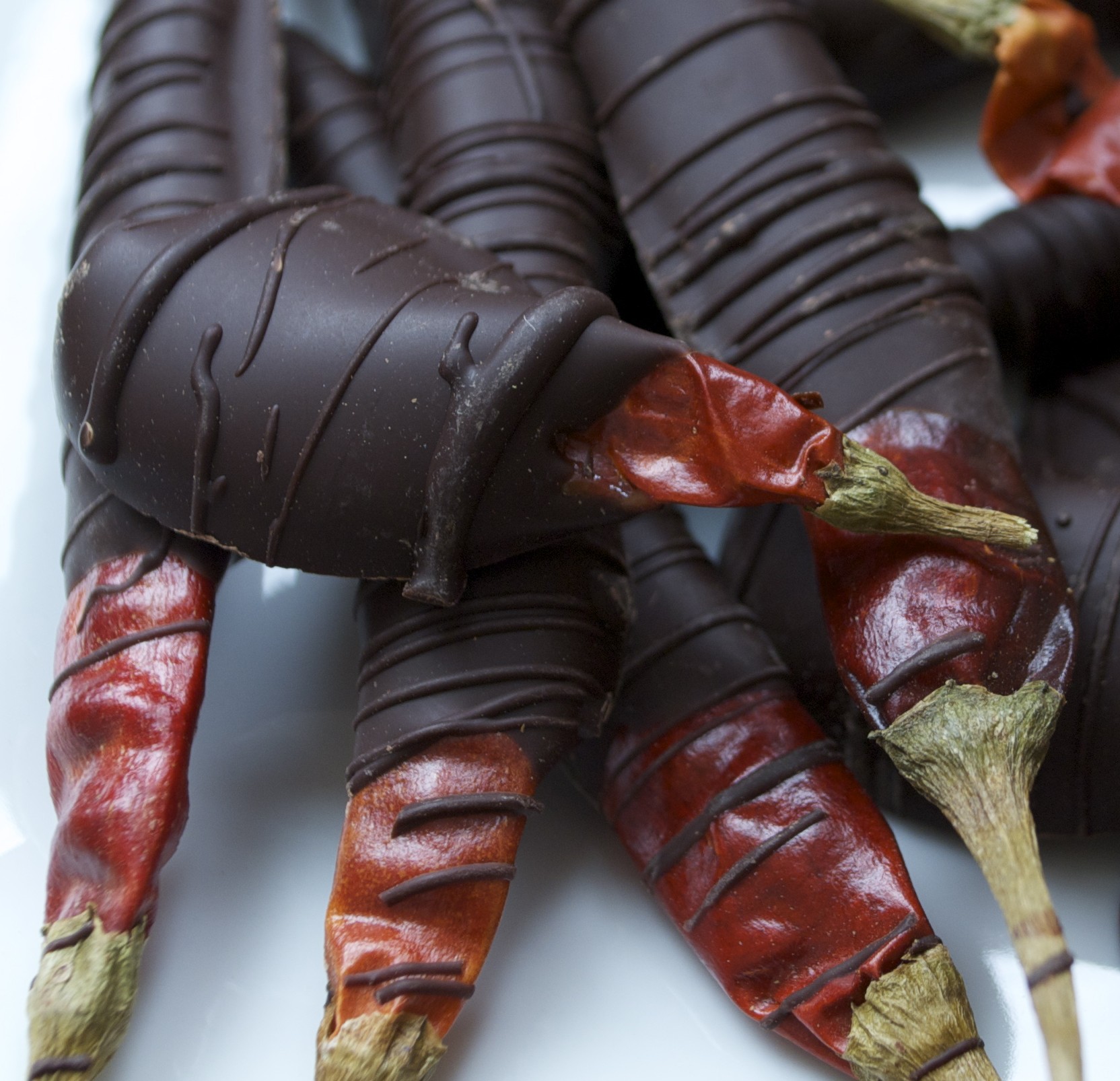 Kakawa makes a very unusual and delicious chocolate treat called the Chili d’Arbol – a whole roasted chili topped with agave caramel and then dipped in 80% dark chocolate. Spicy, sweet, and slightly chewy and oh so delicious, I store these chocolates in the refrigerator, take them out for about ten minutes, and devour them slightly chilled. The slight coolness minimizes the hotness as these chocolates pack a punch and are not for the faint of heart. Fans of chili, caramel, and dark chocolate have been known to rejoice and grin with joy when consuming a Chili d’Arbol.