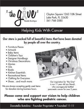 In her grief, Donatella decided to channel her energy to give back and help other pediatric cancer patients and families who are undergoing the same awful experience. Even with insurance, so many of these families struggle, as her family did, and so she opened a store called The Give to provide financial relief and heartfelt support to families fighting cancer.