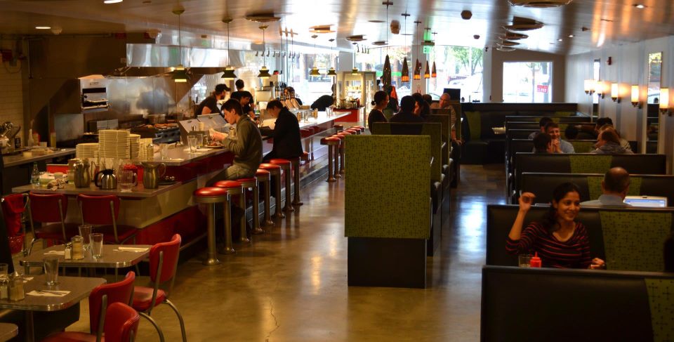 What is it that makes a diner a diner? Is it the feisty, but warm waitresses, quick with a cup of coffee and assumed familiarity? Is it the curved ceiling, the tiled floors, the classic stainless steel exterior? The cozy booths, the counter with stools that puts you right near the action at the grill? The reassuringly familiar menu? Breakfast-all-day? The wide range of customers, who mirror the diversity of America itself? Adam, Founder of Veggie Galaxy