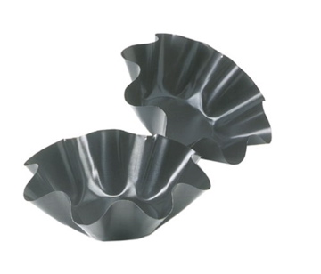 which are 7-inch pans that require a 9-10 inch tortilla although a set of 8.5 inch bowls called Norpro Nonstick Tortilla Bowl Makers that require a 12 inch tortilla are also available. To purchase the pans on-line go to www.amazon.com where the bowls are priced at $6-$7 for a set of two (with free shipping for Prime members).Consider buying two sets of pans to save on baking time, especially if serving a large group.