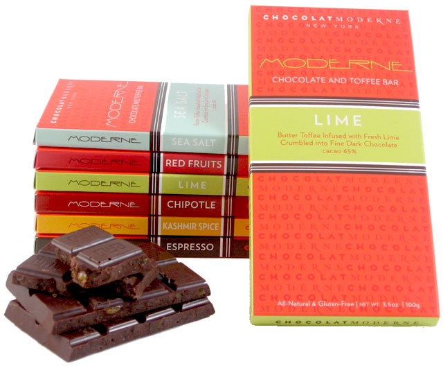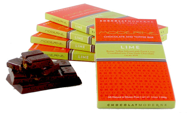 Lime: A scrumptious bar made with a 65% cacao blend of fine dark chocolate with butter toffee nuggets infused with lime. Absolutely sublime. Winner of the 2012 SOFI Award for Outstanding Chocolate (equivalent to the Oscars for Chocolate). My favorite.