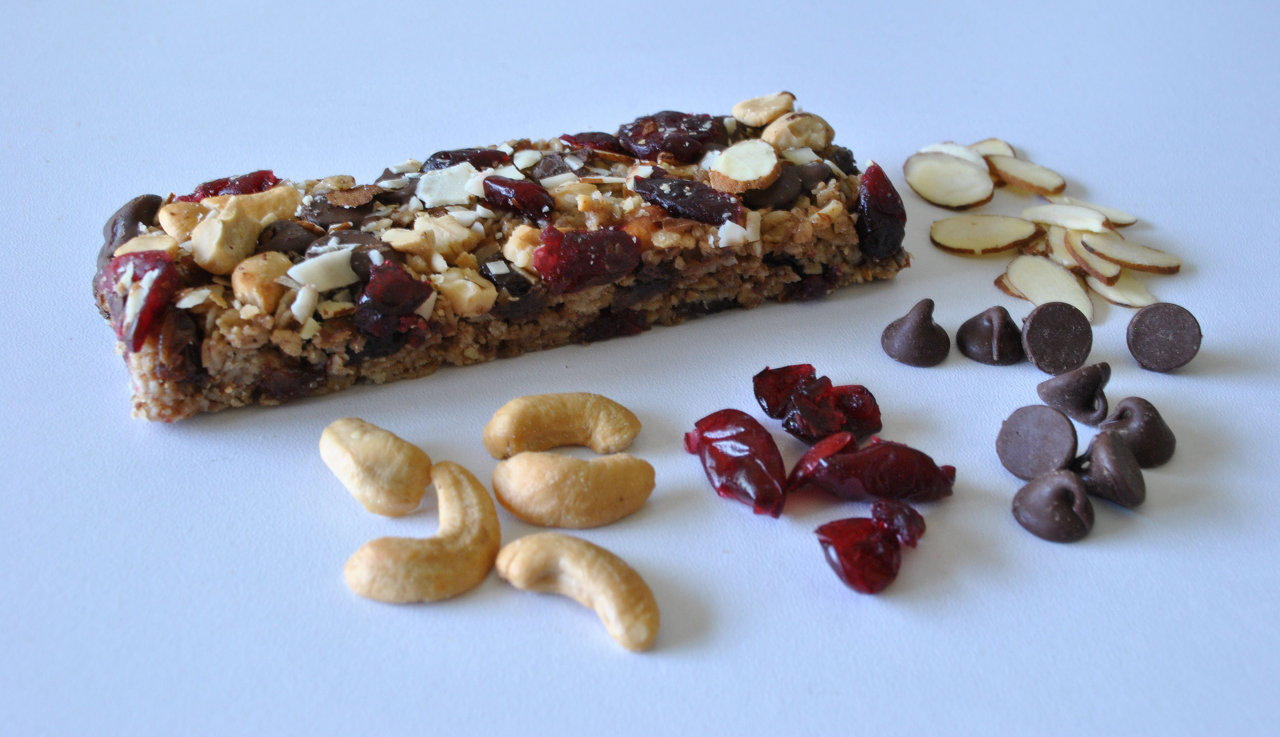 Nuts and Berries: Made of organic granola, honey, cranberries, raisins, chocolate chips, peanuts, coconut, salted cashews, almonds, brown sugar, butter, and vanilla extract.
