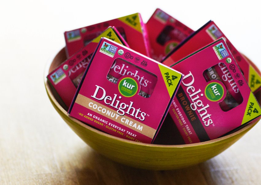 KUR Delights are, for lack of a better word, delightful organic individually wrapped sweet treats that are easily packed in a lunch box, backpack or purse. Ideal as a mid-day snack – with absolutely no added sweeteners – Delights are naturally sweetened with organic raw dates (a fruit with a natural sugar content of about 80%) to which four to seven other raw and organic ingredients are added to make the three flavors: Brownie, Dark Chocolate Mint, and Coconut Cream. Certified USDA Organic, Gluten-free, Non-GMO verified, and Kosher, Kur Delights are a pure and healthy product for those who have a passion for dates.