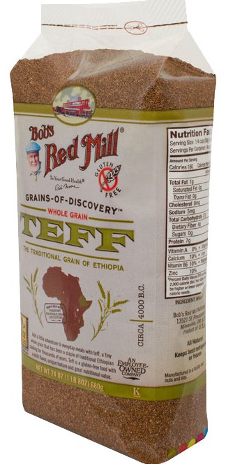 Whole grain teff by Bob’s Red Mill can be purchased in 24 ounce bags for about $6 from www.vitacost.com or directly from Bob’s Red Mill’s website: www.bobsredmill.com