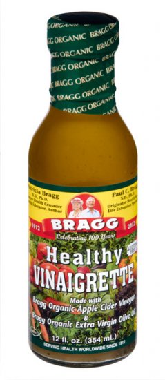 Vinaigrette: An organic salad dressing made from apple cider vinegar, extra virgin olive oil, purified water, honey, garlic, liquid aminos (vegetable soy protein and purified water), onion, and black pepper. This dressing has s tangy zesty flavor and is an all-purpose salad dressing. Each tablespoon has 45 calories, 4.5 grams of fat, 1 gram of sugar, and 30 mg of sodium.. My favorite Bragg dressing.
