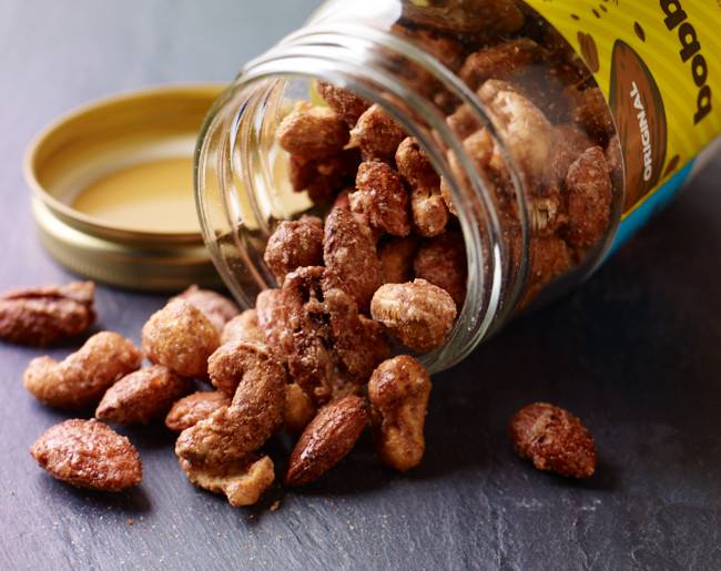 Bobbysue’s Nuts come in two varieties: Original and Some Like It Hot, with the only difference being the perfect amount of kick in the Some Like It Hot version. Both varieties are sold in four sizes: a 32-ounce jar ($36), an 8-ounce jar ($10), a 2-ounce jar ($3.75), and a 2.5-ounce grab and go packet ($3.49). The company also produces a seasonal variety aptly called It’s Raining Chocolate with chocolate drizzled over the nuts.