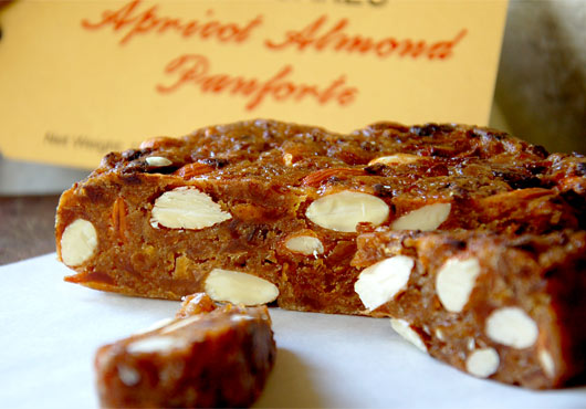 Today, there are as many variations of Panforte as there are ingredients with a truly outstanding example made by Napa Cakes of California. Inspired by the abundant fruits and nuts grown in the Napa Valley, Marjorie Caldwell takes locally grown ingredients to create two varieties of Panforte: Original and Apricot Almond.