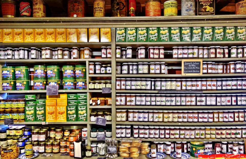 The crackers are made in three varieties (regular, bite-sized, and cheddar) and in three sizes (7.5 ounce box, 16-ounce refillable tin, and a 16-ounce bag), and are priced from $4.45 – $14.95. To purchase, go to the Vermont Country Store website: www.vermontcountrystore.com, where free shipping is offered on all orders over $65. Or, if your travels take you to Vermont, consider a stop at the store where the crackers can be purchased on-site, as illustrated below.