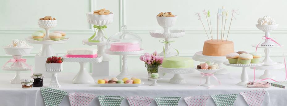 The company also makes mini cake stands in strawberry creme, mint green, buttercream, and meringue white that are ideal for cupcakes, mini-cakes, tarts, and cookies, that are priced at $14. In addition, glass domes to fit all the cake pedestals are also available from $14 – $66 each. To view the complete product line or purchase the cake pedestals, go to the company website (www.rosannainc.com). To find a store that carries the Rosanna products, use the company store locator: www.stores.rosannainc.com.