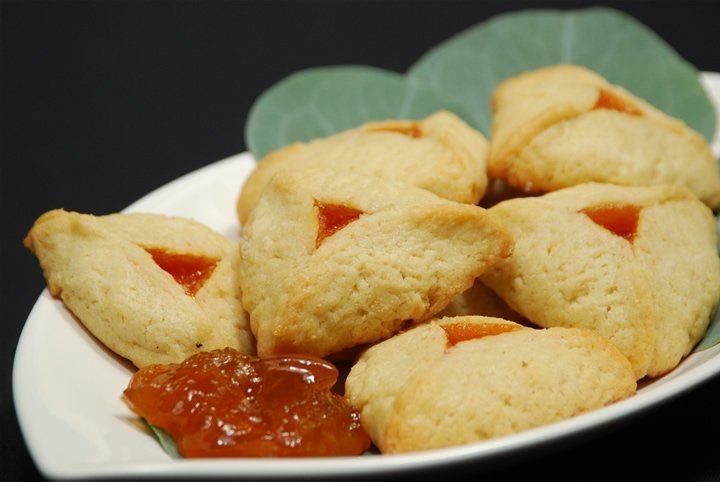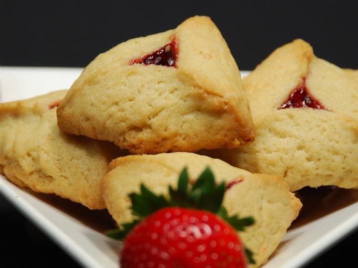 A Hamantashen is a three-cornered pastry pocket stuffed with a sweet filling. Soft and chewy, Hamantashen is similar to a cookie and typically eaten during Purim – a holiday in which the Jews celebrate being saved from persecution in ancient Persia. Purim is usually celebrated in March (as determined by the Hebrew calendar) but through the years, Hamantashen has become very popular so the cookie is often served year-round and consumed by both Jews and non-Jews alike.