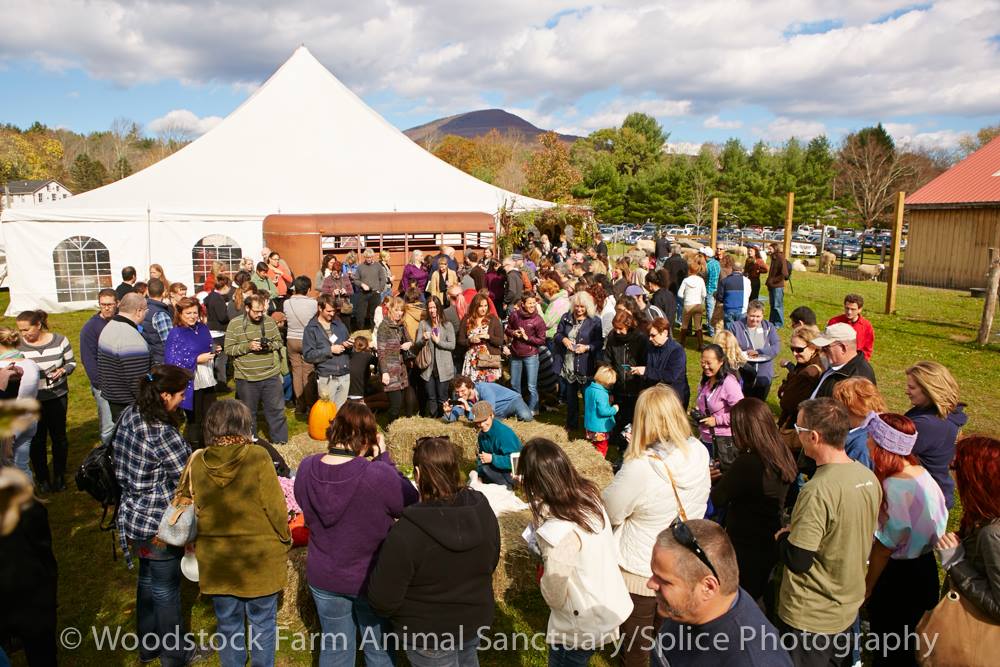 Hailed as the largest all-vegan seated meal ever served in a goat pasture, ThanksLiving is the most important fundraiser of the year for the Woodstock Farm Animal Sanctuary – a special place that provides shelter to cows, pigs, chickens, turkeys, ducks, sheep, goats, and rabbits who have been rescued from cases of abuse, neglect and abandonment.