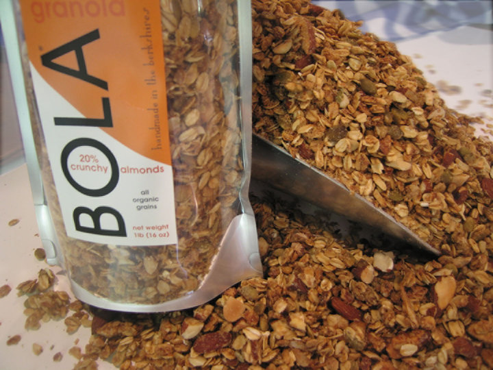 Bola Granola is a traditional great tasting granola with the toasty balanced flavor of oats, almonds, seeds, wheat germ, and wheat bran. With 5 grams of protein and 5 grams of sugar per 1/4 cup serving, Bola Granola strikes the right balance of taste and nutrition. Bola Granola is distributed in grocery stores, food coops and gourmet markets in the northeast including Whole Foods but the granola can also be purchased from the company website: www.bolagranola.com where a 1 pound bag is $7. Gluten-free and Barely Sweet versions are also available. See the website for full details.