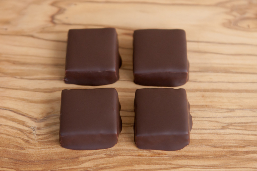 Almond Crack is one of the most appropriately named chocolates ever tasted: a sinfully addicting flaky butter-toffee (made with toasted organic Kashiwase Farms almonds, Gilt Edge Creamery butter, organic, fair-trade cane sugar and healthy dose of esprit du sel) dipped in 72% cacao Guittard chocolate.