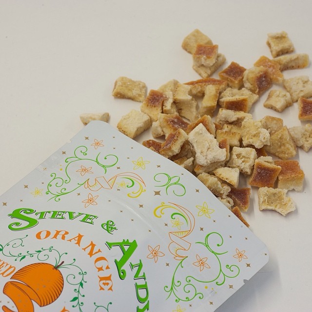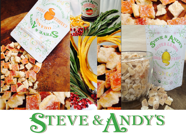 The foodie world has been abuzz with talk about a Brooklyn-based company called Steve & Andy’s Organics who make organic, non-GMO marmalade, preserves, chutney, handcrafted gluten-free flours, salted lemon peel and candied orange peel. Intrigued with the idea of any product that uses oranges, I set out to obtain Steve & Andy’s Candied Orange Peel, which took some time and persistence because everyone wants this new product.