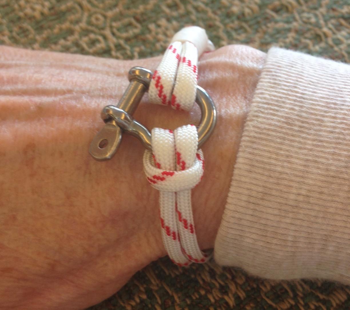 Shackle Bracelet: The Nautical Shackle Bracelet is one very stylish bracelet made with 550 Paracord (9 colors) and a forged 316 stainless steel shackle (that has a 1,500 pound breaking strength). $12 each with discounts for orders of 6 or more. Easy to put on and take off with the captive pin to the shackle.