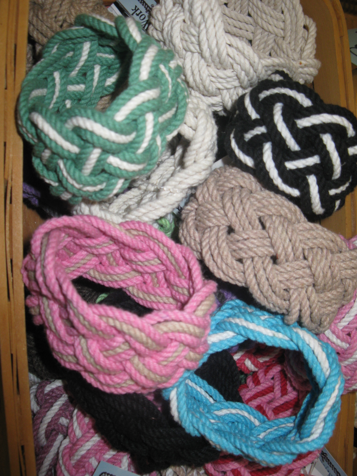 Outline: The Original Mystic Sailor Bracelet Turks Head made with cotton cord and outlined in satin in 41 color combinations. $5 each.