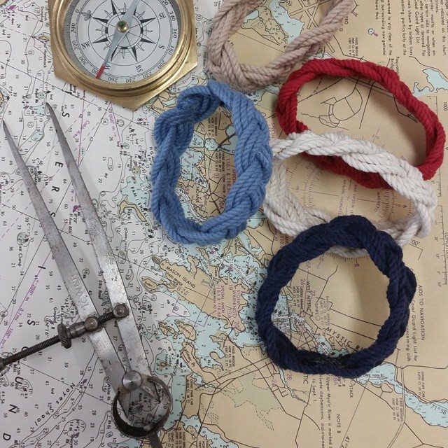 The good news is that some things never change: the nautical rope bracelet is still made the same way today as it has been for generations – by hand with cotton cord by Mystic Knotwork in Stonington, Connecticut. The iconic bracelet comes in ten designs:
