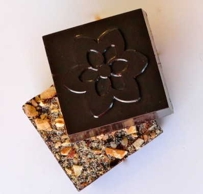 For those who prefer bars, there are many to choose from with my favorite the Lilly Chomp Monster Bar: a gigantic 5 ounce square bar made of black mission figs, roasted almonds and dark chocolate created by Amanda for Joshua, whose childhood passion for the Chunky Bar made with milk chocolate, raisins and peanut was replaced with a more grown up version treat.