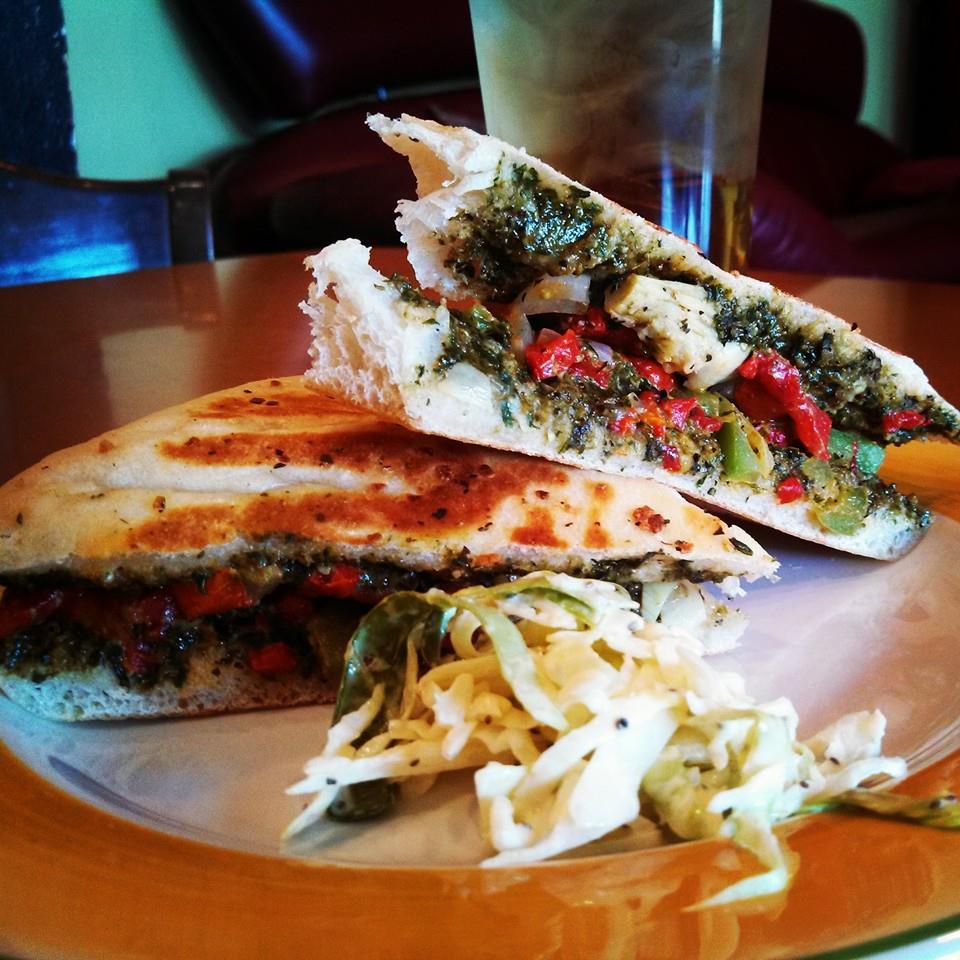 Breakfast, lunch and dinner are served with all items vegetarian or vegan including breakfast and lunch burritos, Quiche, hot oatmeal with various toppings, salads, and delicious grilled focaccia “sandwiches” (Tomato and Basil, Grilled Vegetable Mozzarella, Grilled Hummus, Spicy 4 Cheese, and more), and paninis (Hemp Pesto). Speciality desserts from local bakeries are also available to satisfy a sweet tooth.