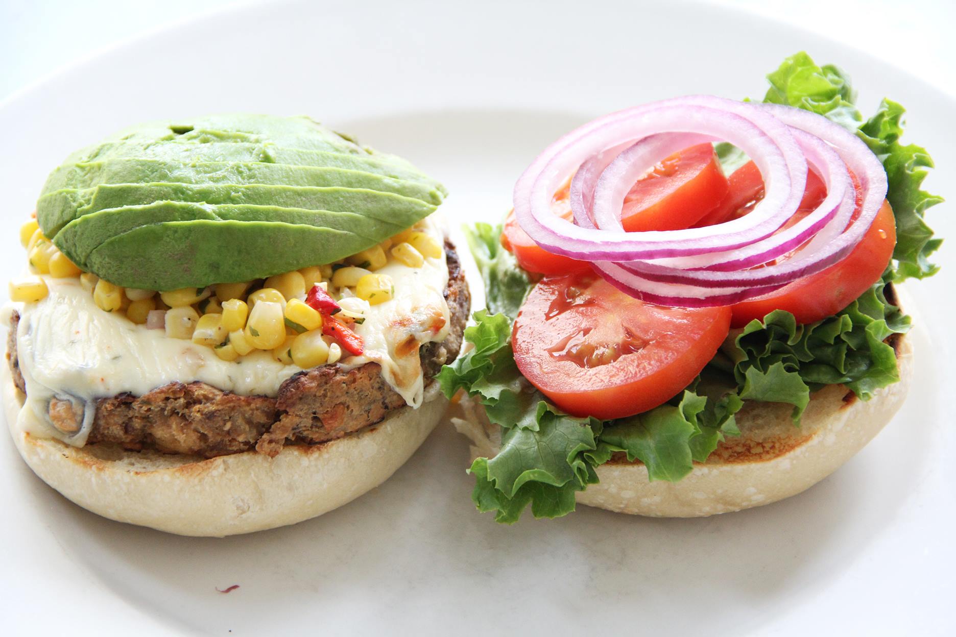 Choose among a variety of vegetarian and vegan options including Tofu Scramble, a Black Bean Burger, a Veggie Burger, a Seitan Gyro, Tofu Bahn Mi (barbecued tofu), hummus, Veggie Ramen, Pad Thai, Cantonese Stir Fry, a Falafel Plate, a Mediterranean Wrap, soups, salads, guacamole, and a host of side dishes including quinoa salad, beets, seasonal vegetables, caprese tomatoes, and fruit salad.