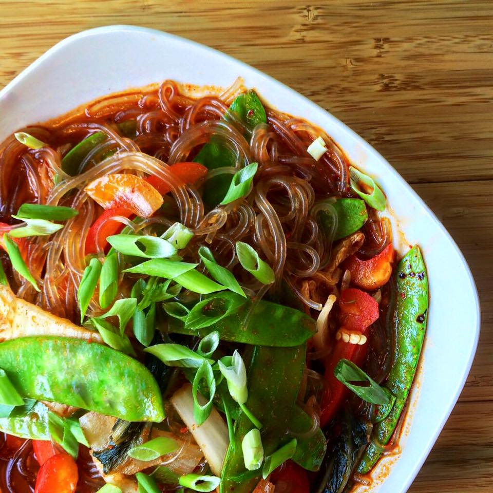 Start with fresh steamed edamame, miso soup, sweet potato tempura fries, a green papaya salad with tofu, or steam buns with tofu.
