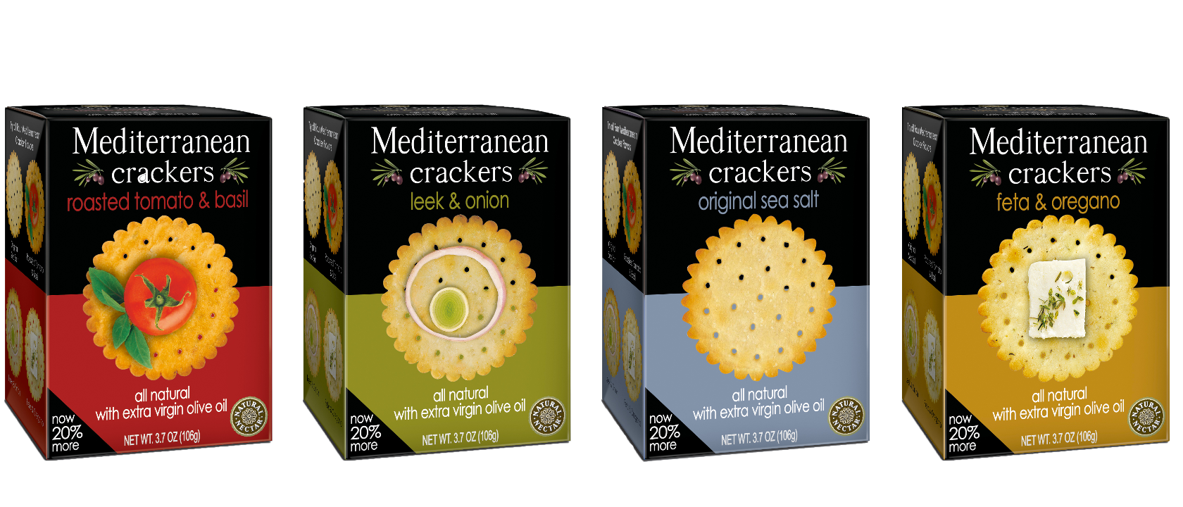Mediterranean Crackers are delicious crisp crackers made with extra virgin olive oil and the freshest ingredients by bakers in Greece. Top with your favorite spread, nut butter or simply enjoy these flavorful crackers straight from the box. With four flavors to choose from – Original Sea Salt, Leek & Onion, Roasted Tomato and Basil, and Feta & Oregano, Mediterranean Crackers bring the authentic flavors of Greece to your table.