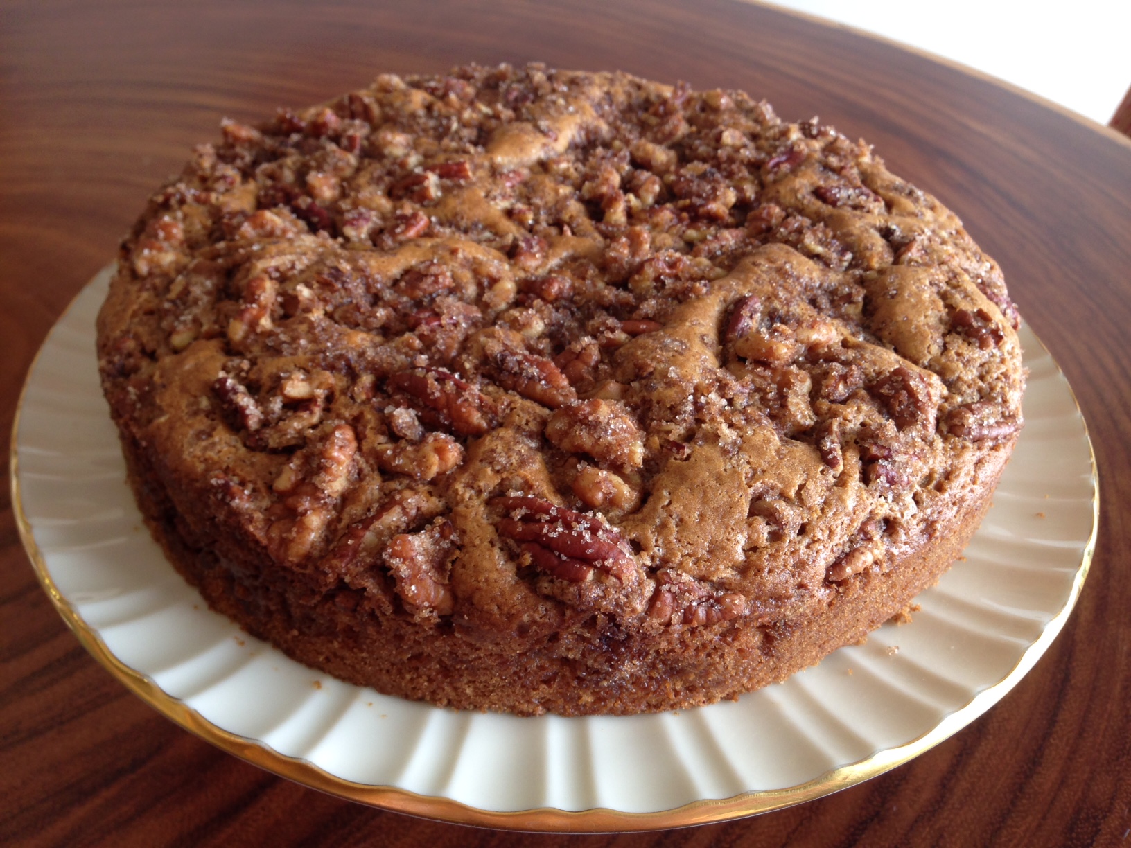 Craving a coffee cake? Make the Cinnamon Walnut Un-Coffeecake – a blue ribbon winning recipe that makes a big moist cinnamon-scented cake with a crunchy nutty topping. Perfect for breakfast or brunch, this coffeecake will disappear quickly because everyone has seconds. Try using a blend of toasted pecans and walnuts for a delicious variation (photo below).