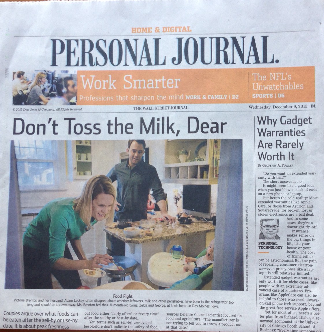 Last week, The Wall Street Journal published an article entitled “The Truth Behind the Sell-By Date” but with a headline of “Don’t Toss the Milk, Dear” which addressed the expiration date on foods – an interesting topic for sure. But, the photograph that accompanied the article on the front page of The Personal Journal was even more thought provoking.