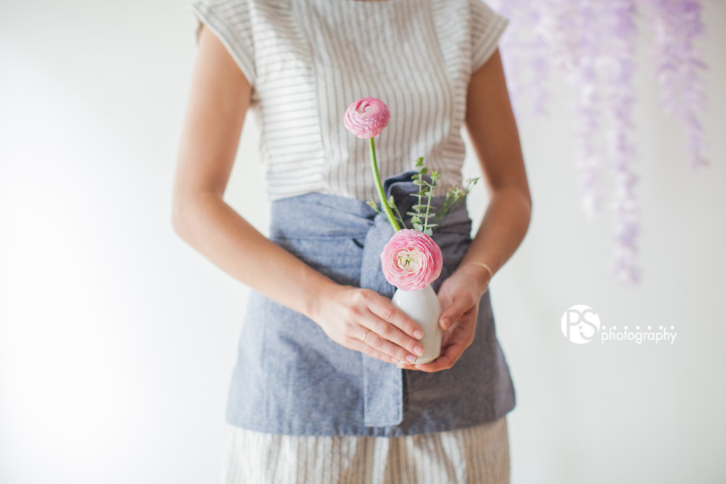 A structured beautifully fitting apron that wears like a beautiful piece of clothing, the Maker’s Apron is made of a linen blend fabric in three colors: flax (beige), black, and chambray (a denim color). With four stitched pockets that range from 5 inches to 6.5 inches wide, there is plenty of room to tuck spoons, scissors, an i-phone and even a notepad.
